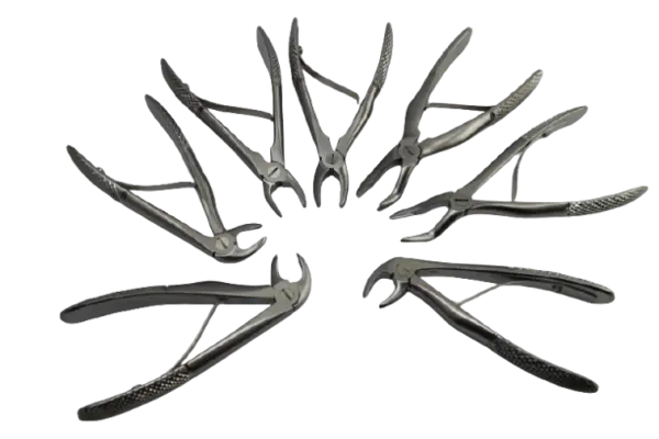 • Exodoncia y Cirugía Oral: Fórceps de extracción (figuras estándar e infantiles), elevadores de raíces (Bein, Flohr, Cryer) y sindesmótomos.